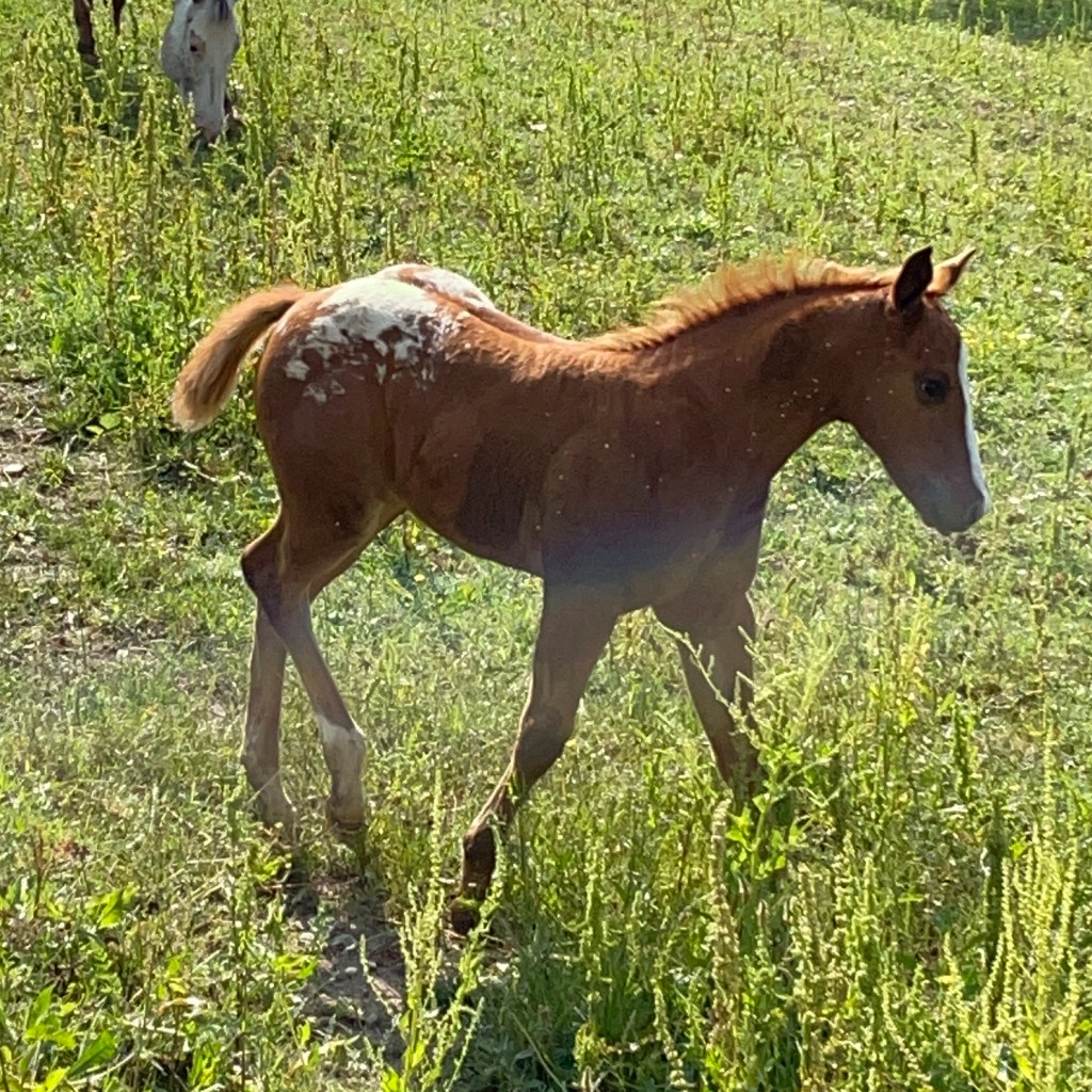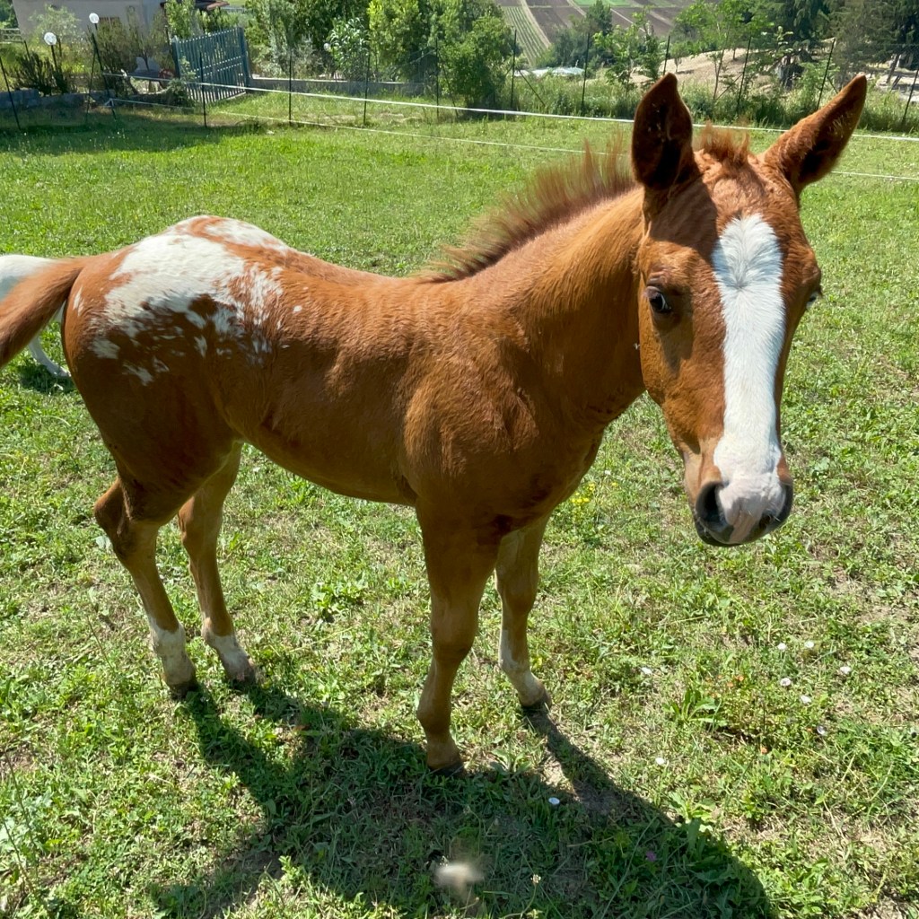 GINNY 🌸 BEAUTY, SPEED & DRIVE • Day 50 • #blueyedgirl #blanket #sorrel #reining #appaloosa #filly 2021 by Lenas Drawing His Gun X CINNABAR EXHIBIT (European Futurity Open Level 4 Champion X Italian Cup Gimkana Western Non Pro Reserve Champion) #forsale at Cuore Appaloosa #aphc registered #nrha enrolled #colorfulreiningdream wp.me/p6W79l-1W7 http://www.spotted.horse