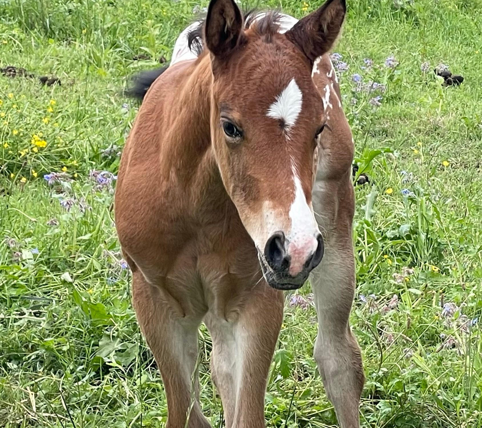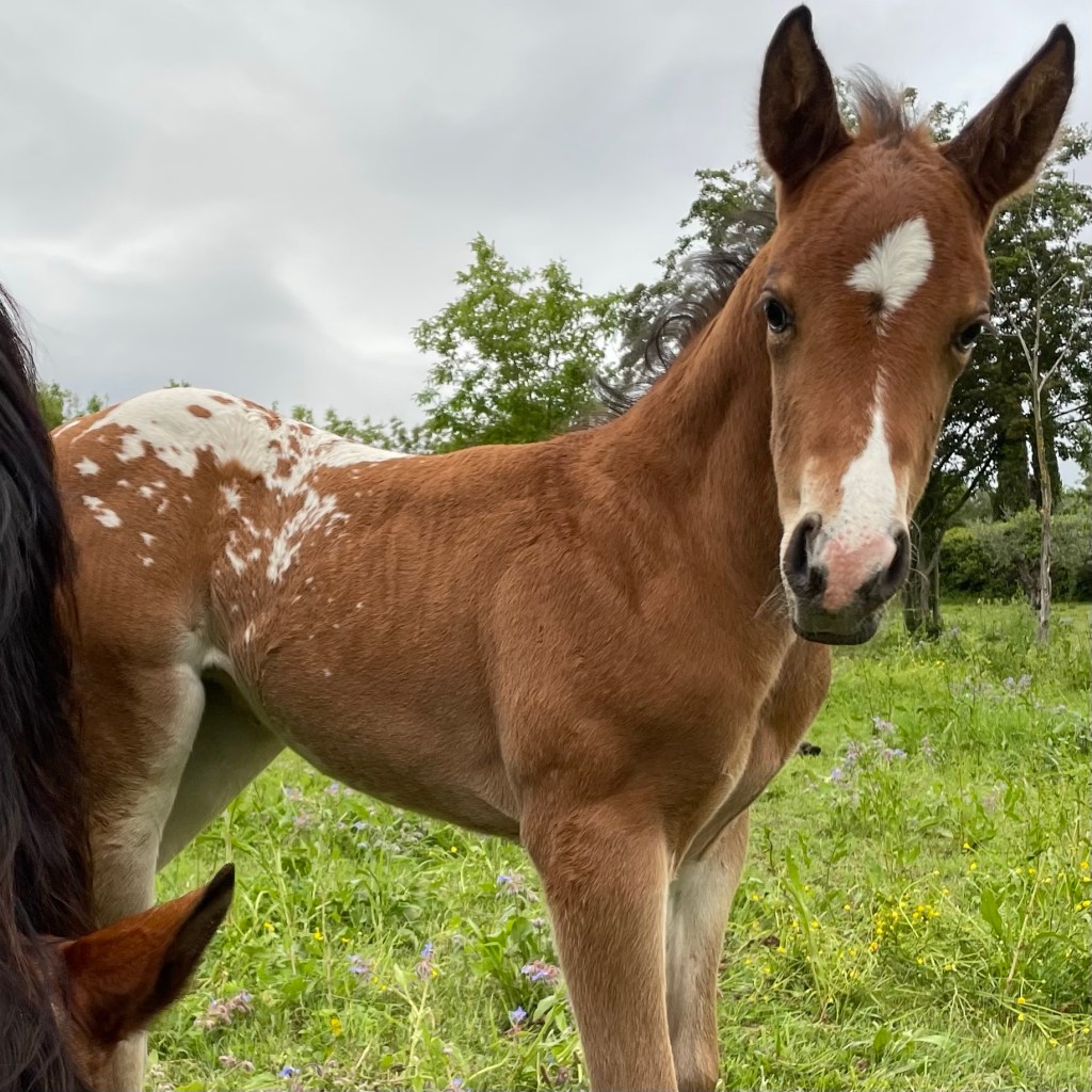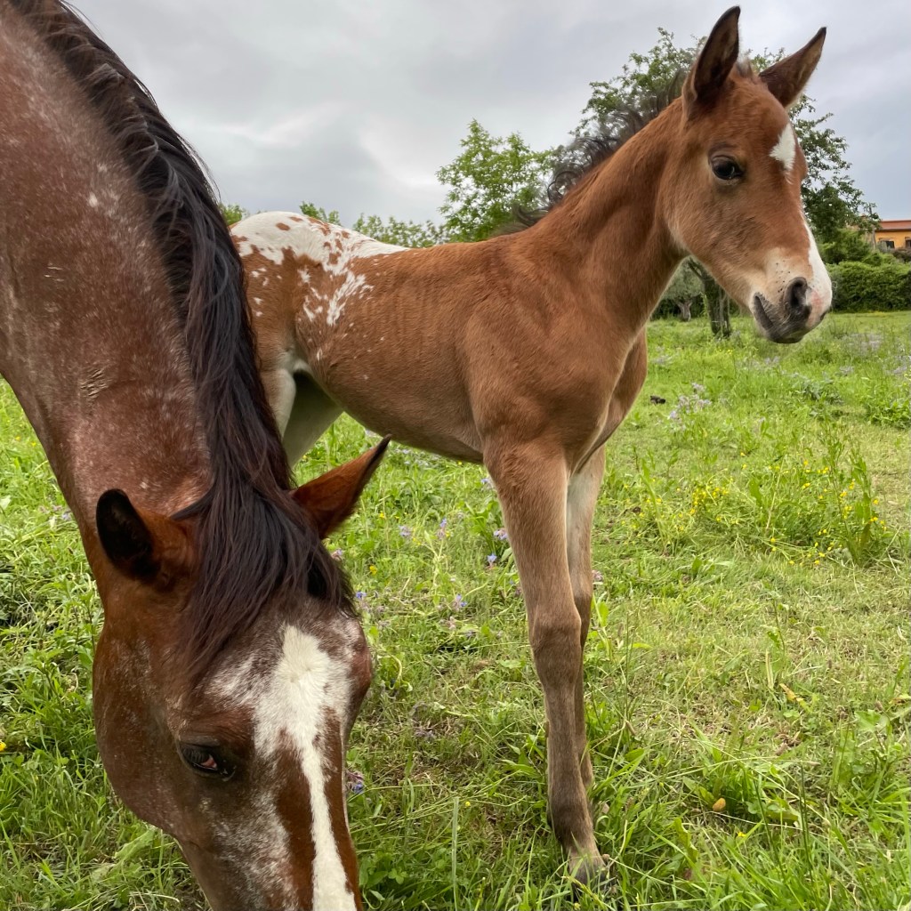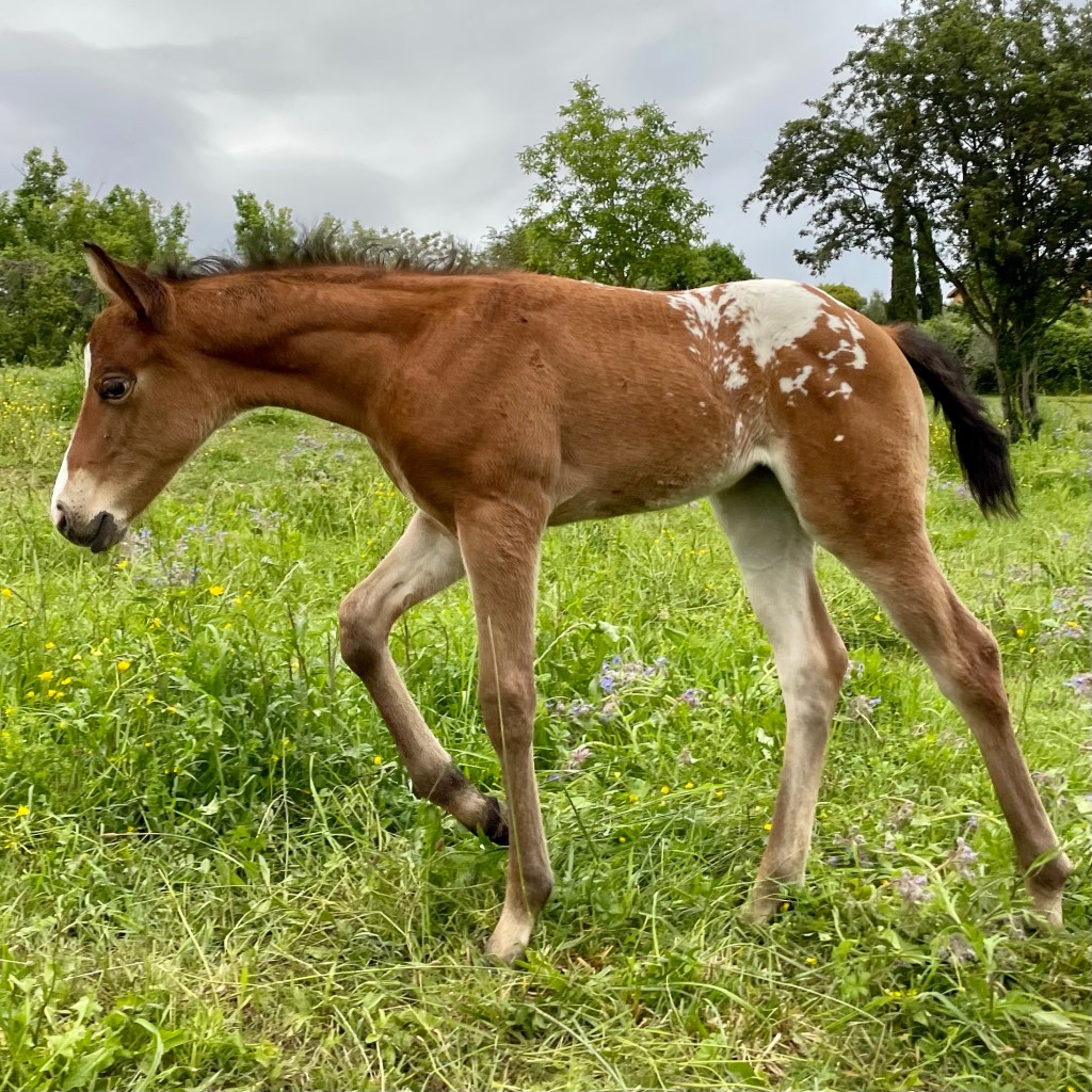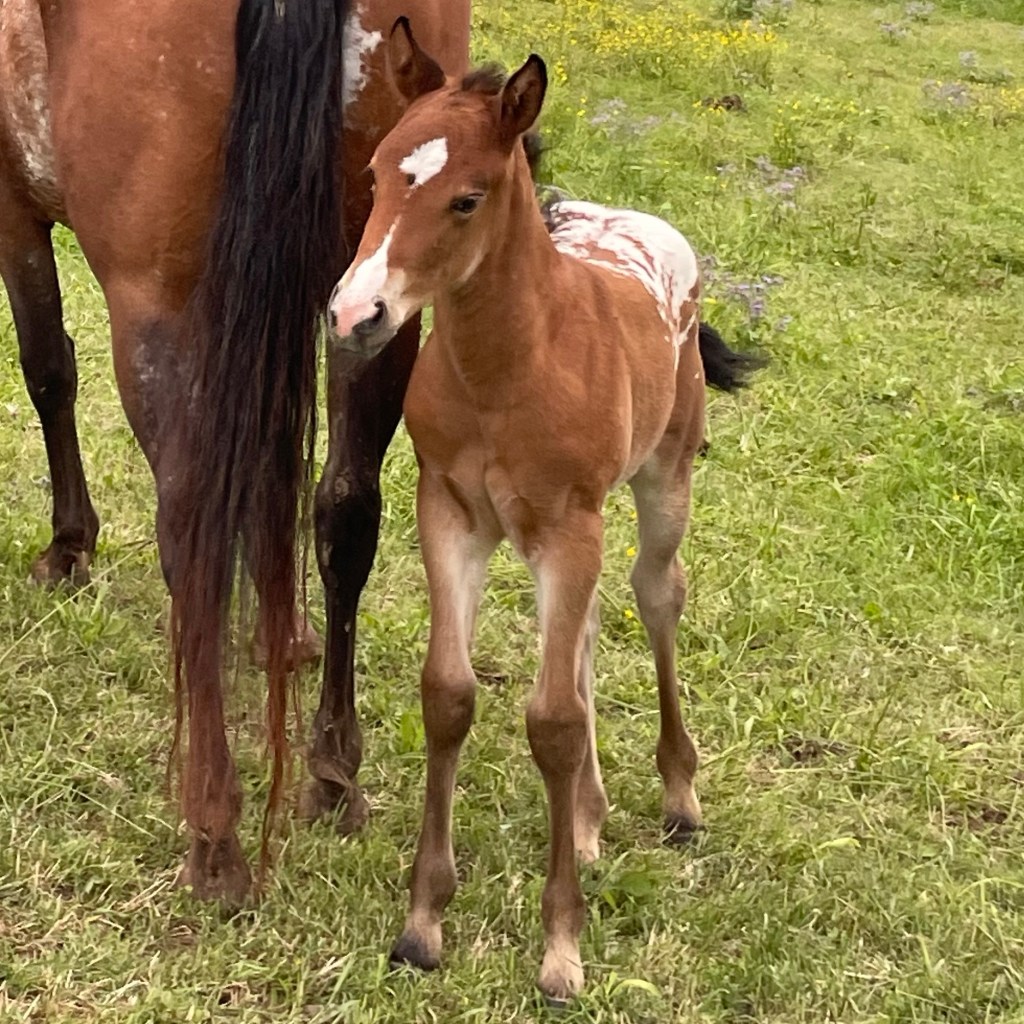 WEASLEY 🐯 GROWING HEALTHY (Day 17) #reining bay #appaloosa filly by Diabolik Wimpy (Wimpys little step grandson) X Boemil Twin Robotop… #colorfulreiningdream … Follow her on http://www.spotted.horse