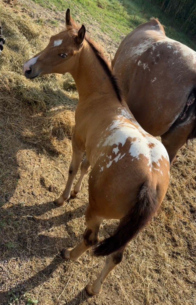 WEASLEY 🐯 BLOOMING (Day 80) #reining #buckskin #appaloosa filly by Diabolik Wimpy (Wimpys Little Step grandson) X Boemil Twin Robotop… #colorfulreiningdream … Follow her on 👉 www.spotted.horse 👈