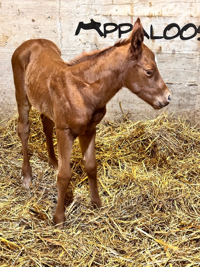 MINERVA 🐈⬛ MAGNETIC BAR (Day 1) … Sorrel #reining #appaloosa filly by CHIC MAGNETIC ex CINNABAR EXHIBIT… Love her! Follow her on http://www.spotted.horse