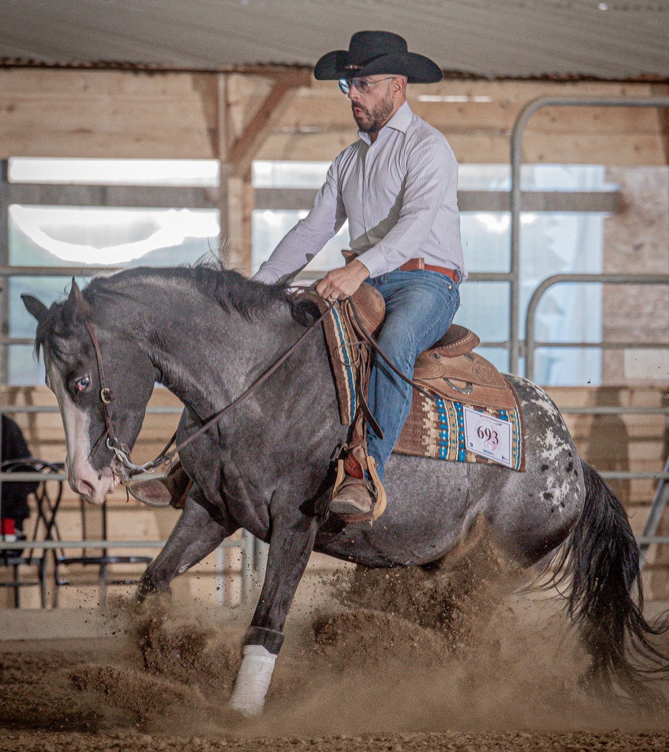 POTTER⚡️SATISFACTION with @paolofa9 💪 … The #colorfulreiningdream comes true #reining #blueroan #blueyes blanket #appaloosa 2020 by @lenas_drawing_his_gun X CINNABAR EXHIBIT • Follow him on 👉 http://www.spotted.horse 👈