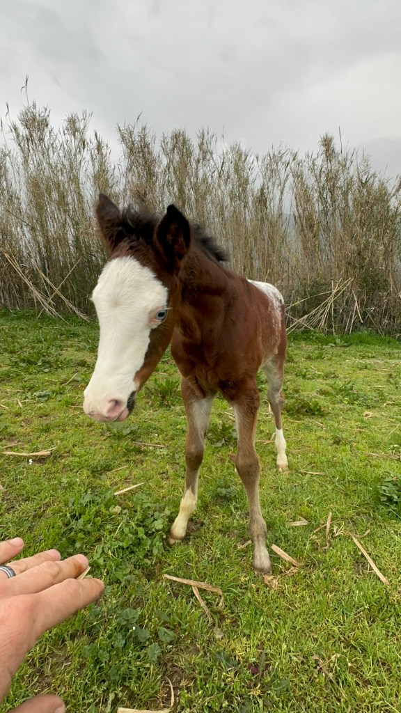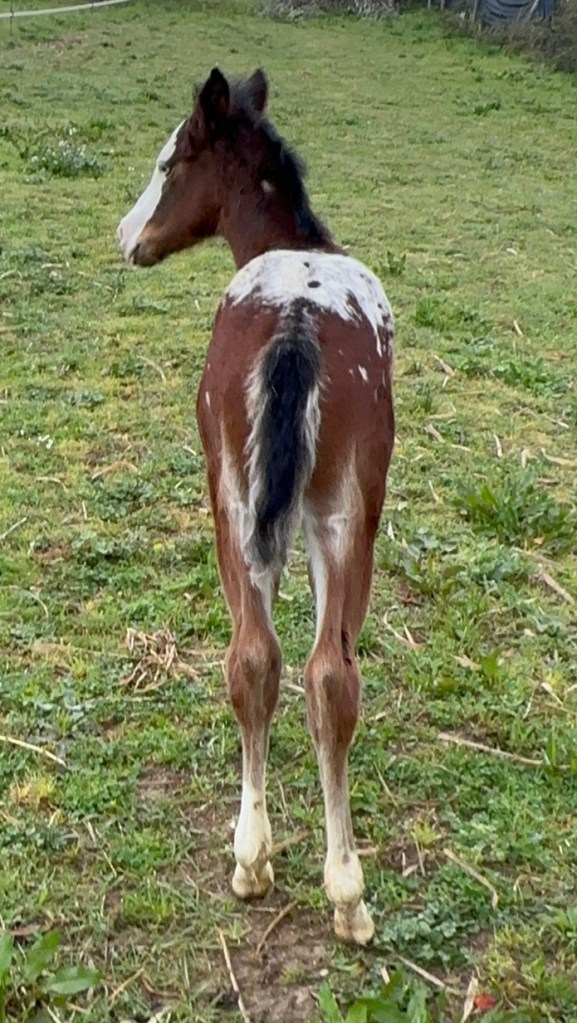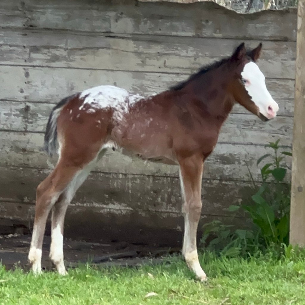 BELLATRIX 🦅 ENJOYS THE PASTURE (DAY 12) … Dark Bay #roan #reining #appaloosa filly with #blanket #Blueyed #baldface sired by SPOOKS GOTTA STING out of CINNABAR EXHIBIT… Follow her on http://www.spotted.horse