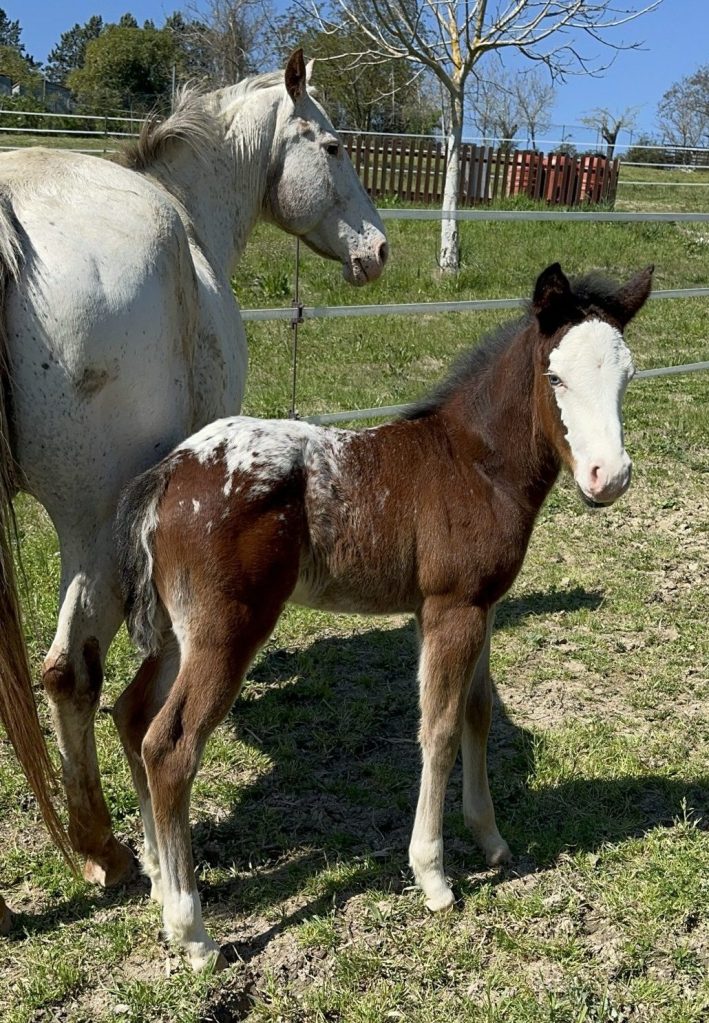 BELLATRIX 🦅 OFFICIALLY SWISS 🇨🇭 (DAY 17) … Dark Bay #roan #reining #appaloosa filly with #blanket #Blueyed #baldface sired by SPOOKS GOTTA STING out of CINNABAR EXHIBIT… Follow her on http://www.spotted.horse