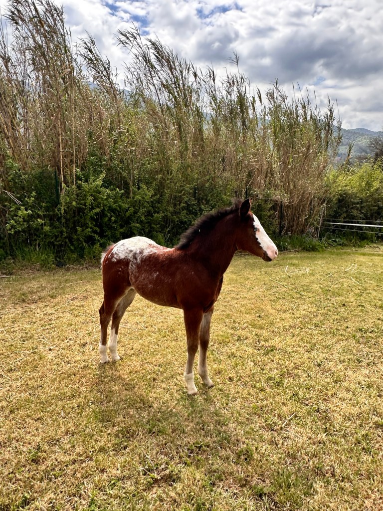BELLATRIX 🦅 PAPER SHOOTING (DAY 37) … Dark Bay #roan #reining #appaloosa filly with #blanket #Blueyed #baldface sired by SPOOKS GOTTA STING out of CINNABAR EXHIBIT… Follow her on http://www.spotted.horse