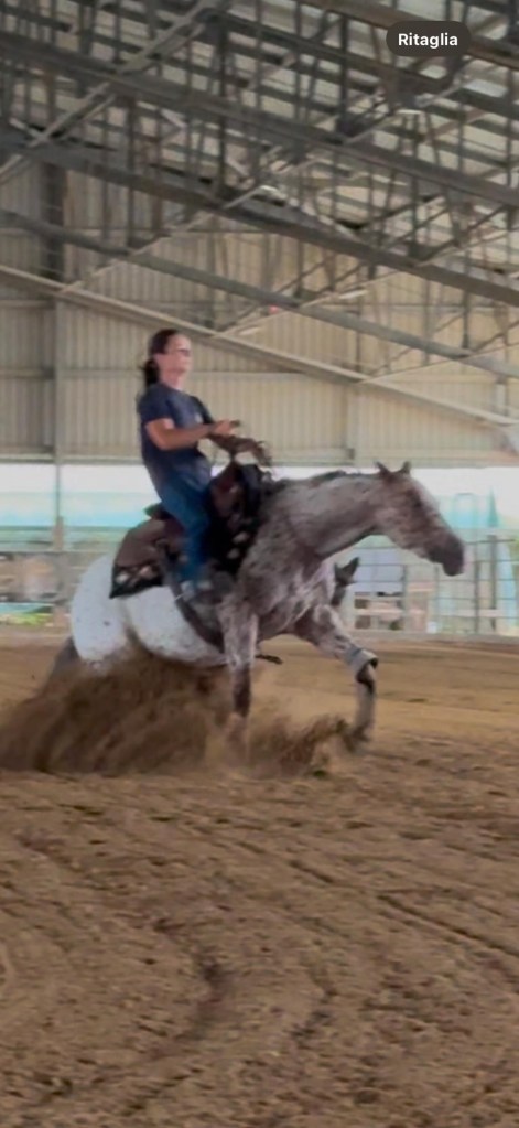 HERMIONE 🐈 BRIDLELESS with @halynabondarenco at @carmignanireiners #colorfulreiningdream #appaloosa #reining @cuore.appaloosa @cuore.cavalli 🌈❤️ follow her on http://www.spotted.horse