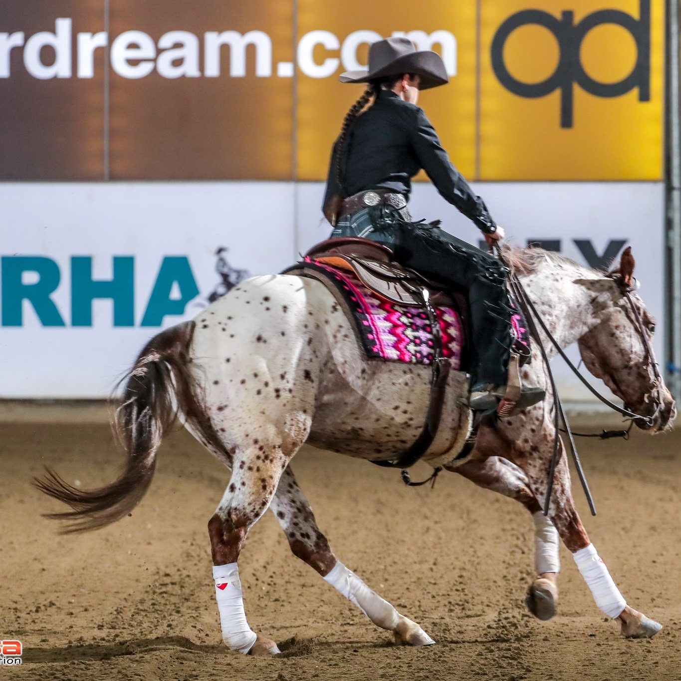 HERMIONE 🐈 debuts in Cremona with Francesca Bianchi coached by @carmignanireiners #colorfulreiningdream #appaloosa #reining @cuore.appaloosa @cuore.cavalli 🌈❤️ follow her on http://www.spotted.horse