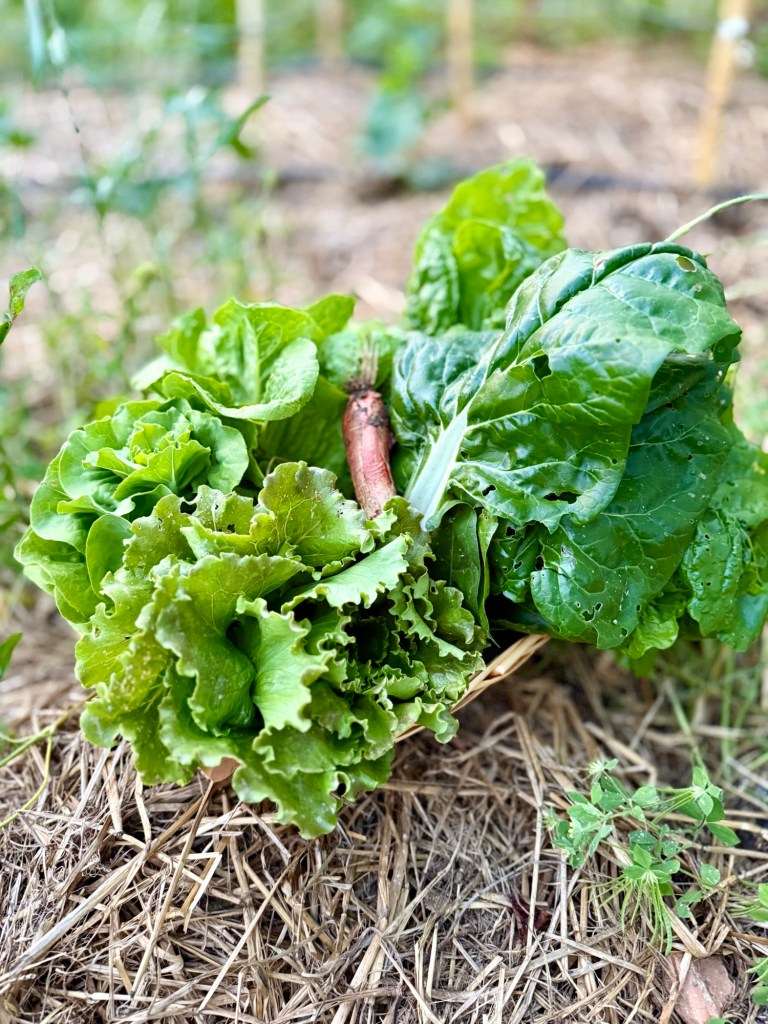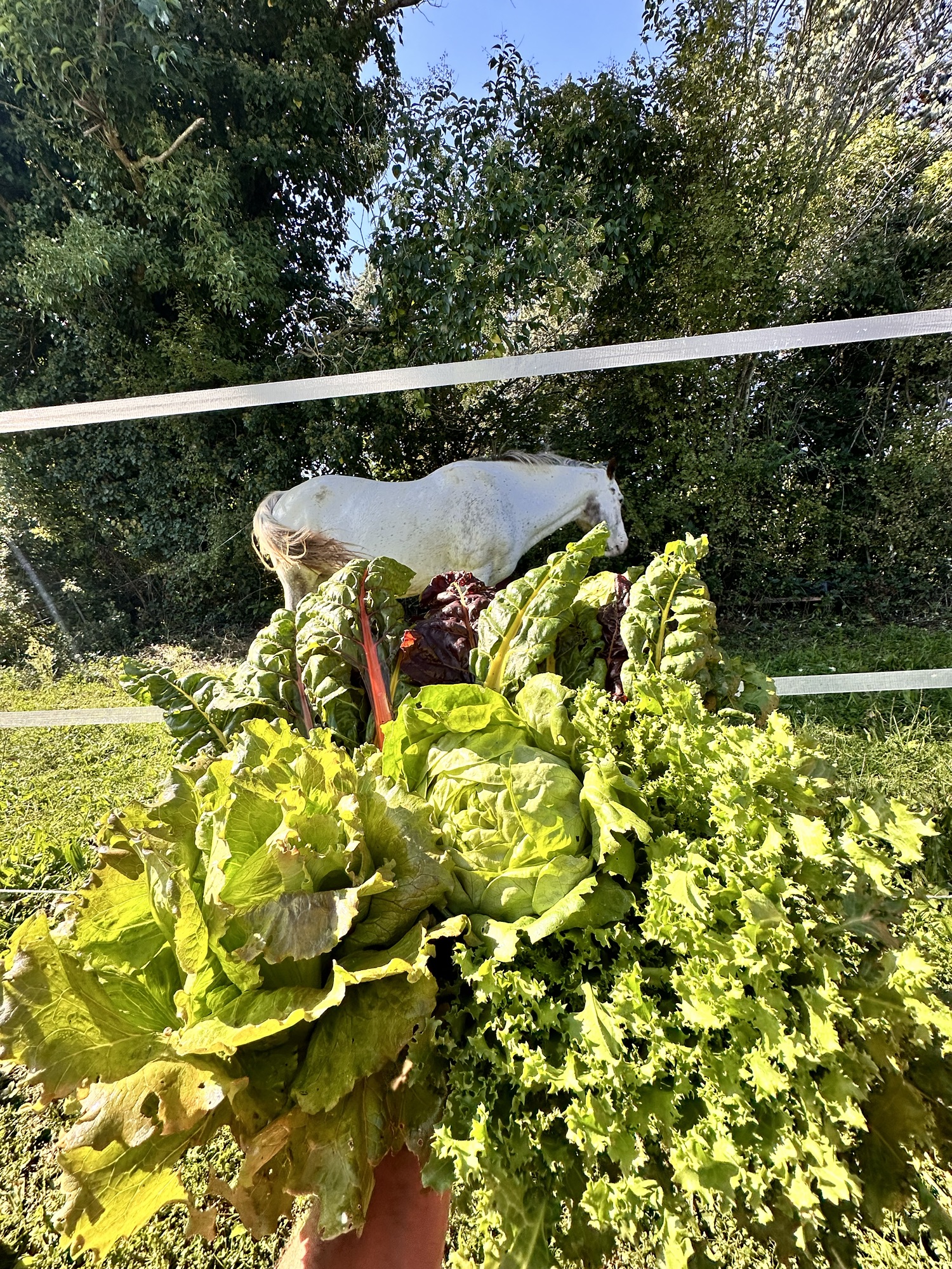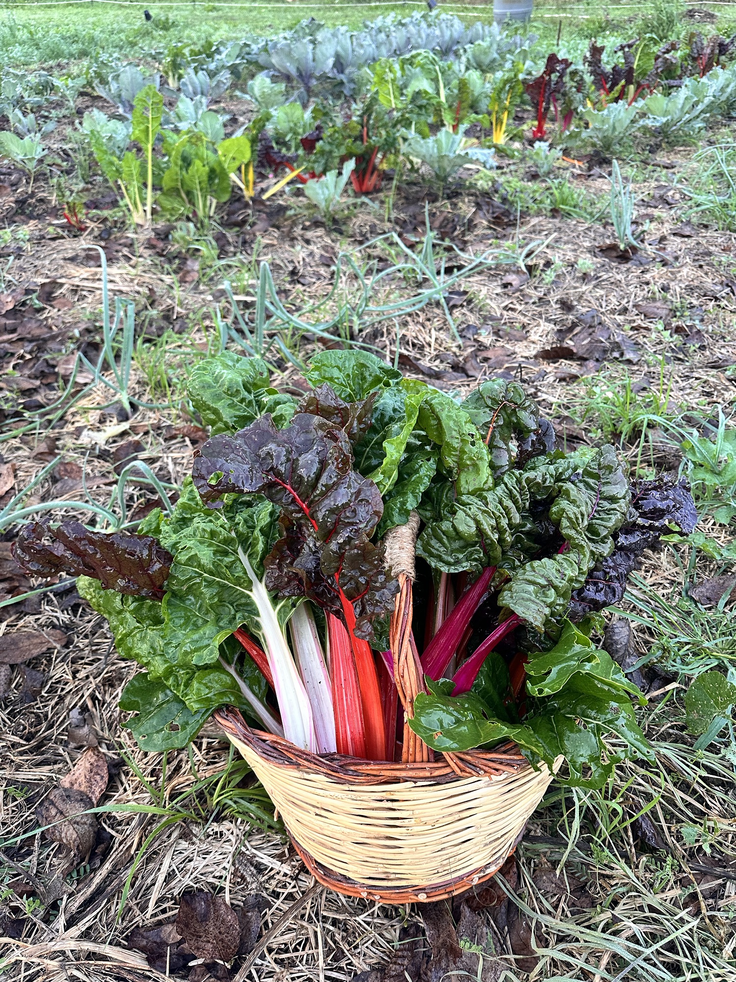 Raccogliamo le prime Bietole Colorate e le ultime Insalate.